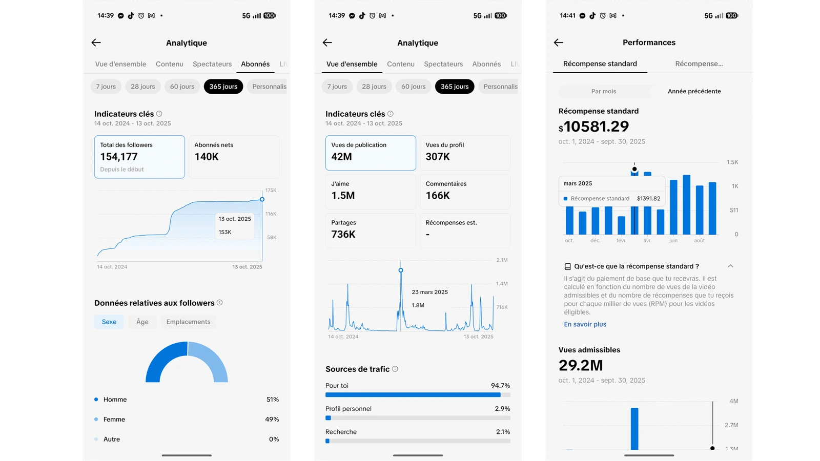 Voici les statistiques que j’ai atteintes grâce au concept que j’ai développé. En publiant une vidéo par jour sur des thématiques pertinentes, ces résultats sont également à votre portée !